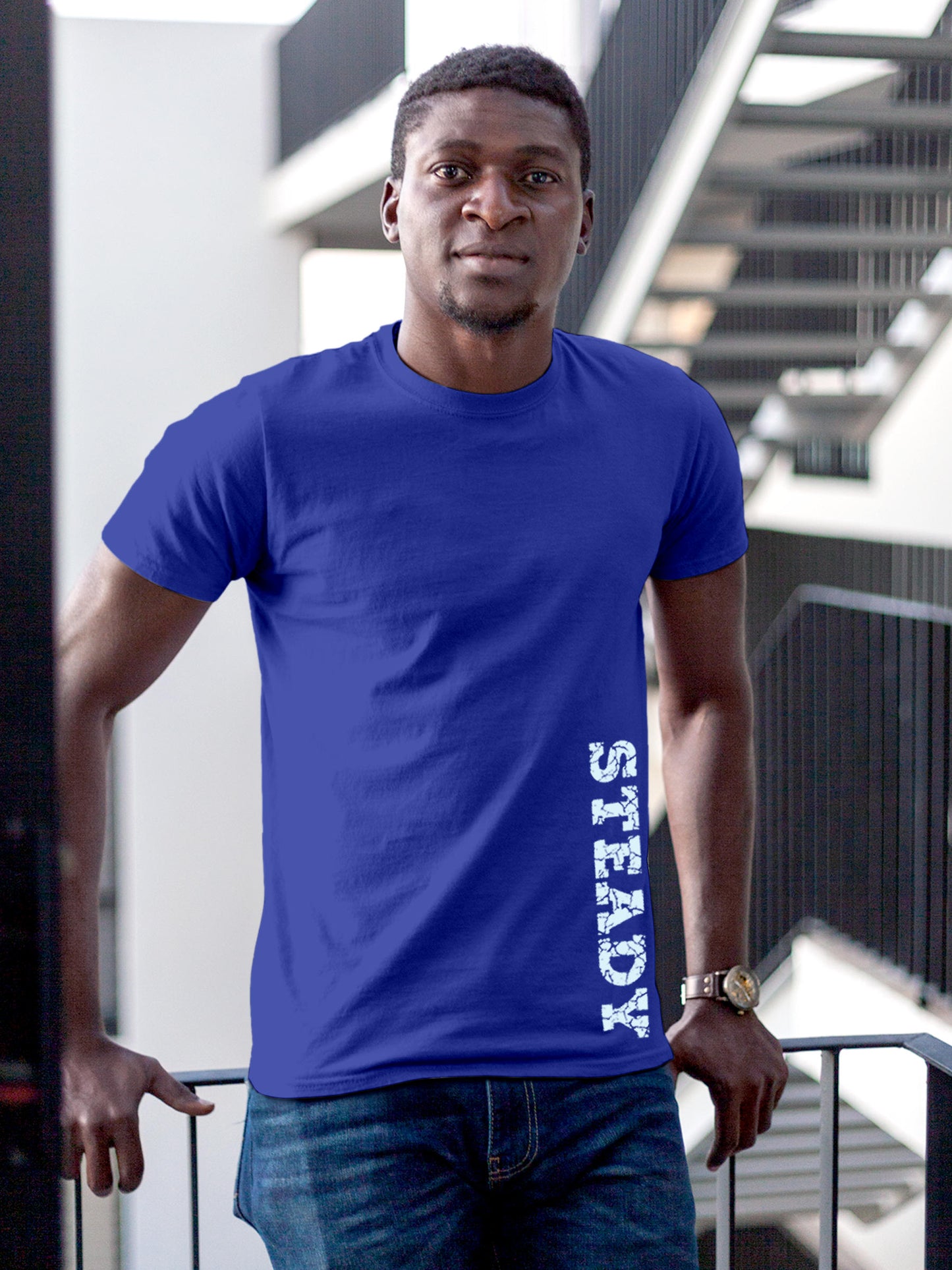 Blue T-shirt for the Steady & Strong Man