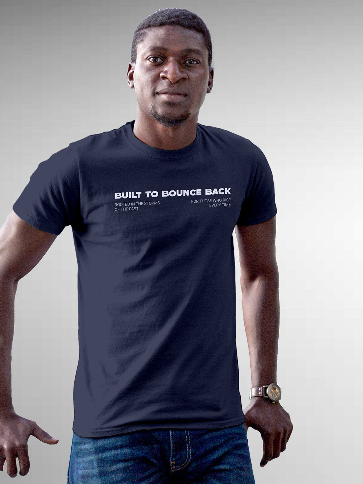 Built To Bounce Back - In Navy Blue T-shirt