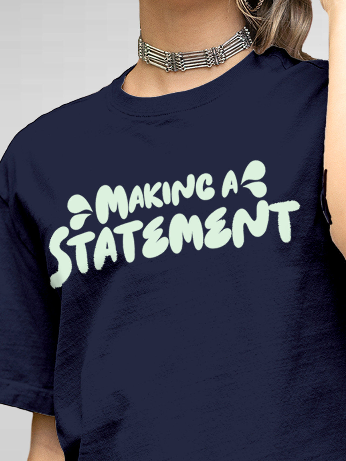 Making A Statement - Navy Blue Round Neck Tee