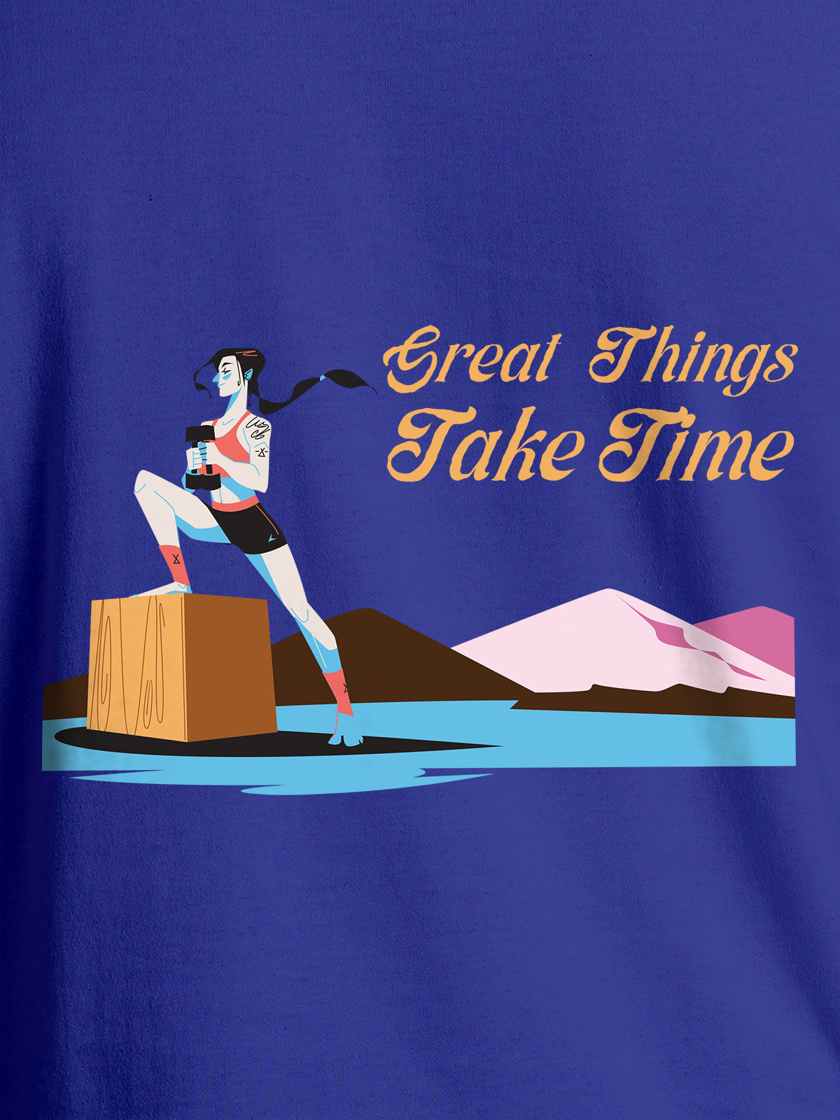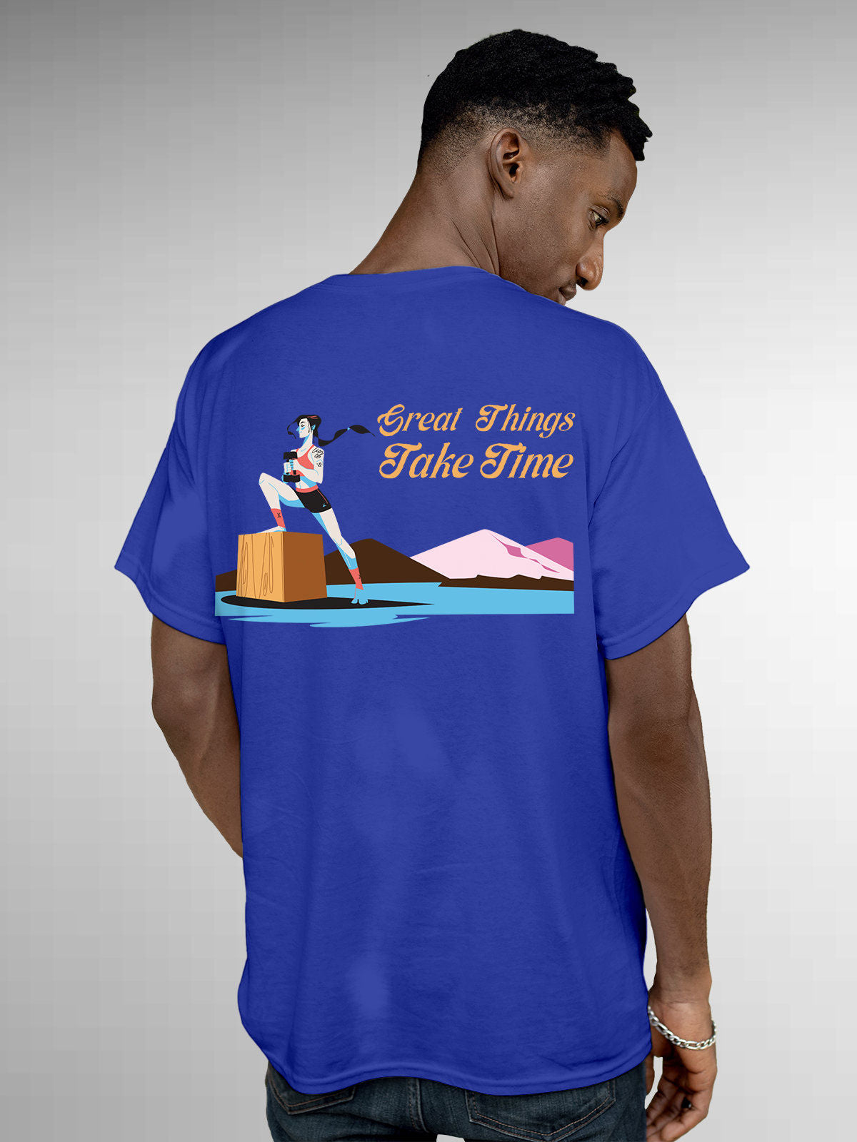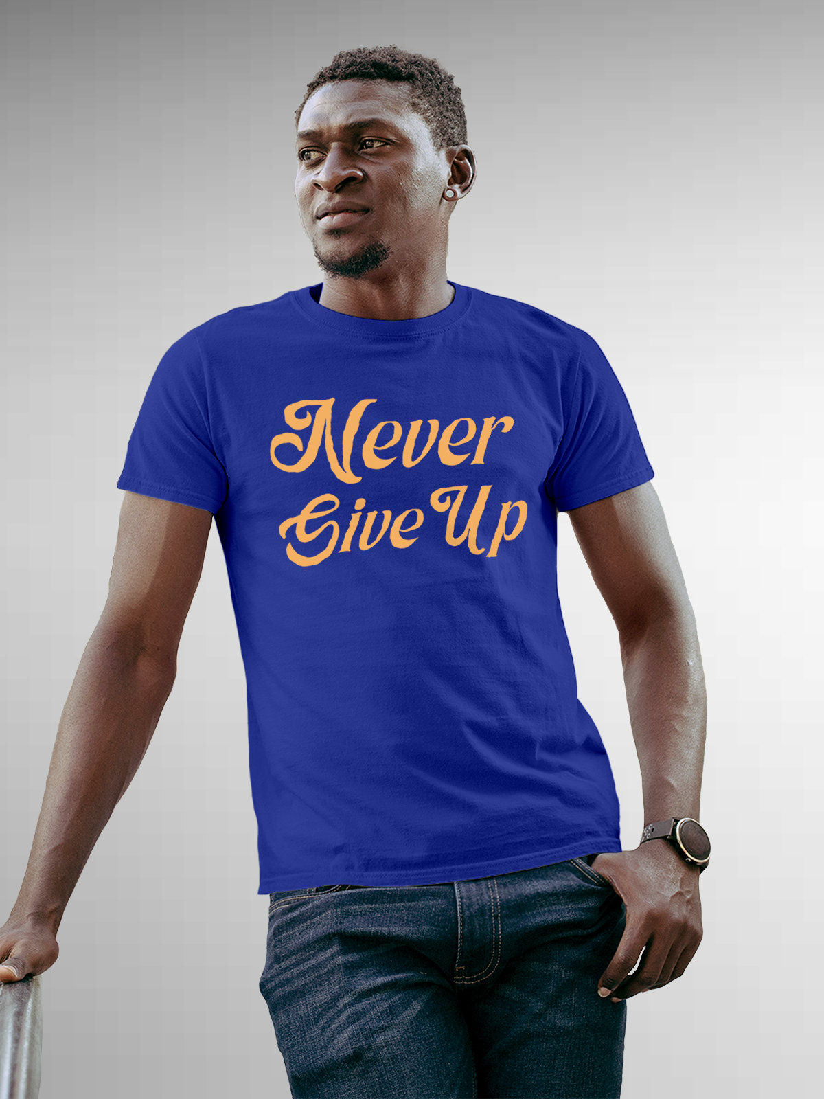 Never Give Up - Blue Round Neck Tee
